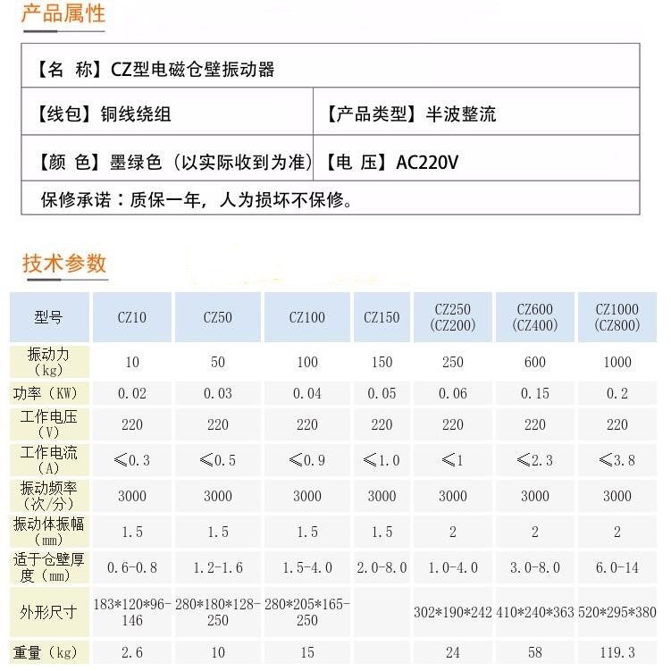 產品名稱:   料倉防閉塞電磁式振打器 CZ400電磁倉壁振動器 			 料倉防閉塞電磁式振打器 CZ400電磁倉壁振動器