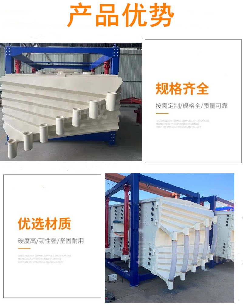 特點與優勢 篩分效率高:獨特的多層分級設計,一機可分兩組,產量大,且物料在篩面的螺旋漸進運動軌跡延長了篩分路徑,提升了透篩概率。 篩分精度高:可組合圓周、橢圓、直線三種運動方式,還可通過無級變頻控制系統調節振幅、頻率等參數,適配不同粒度篩分需求,篩分精度可達 95% 以上。 環保性能好:全封閉結構,粉塵不飛揚,采用偏重平衡,振動小、噪音低,符合環保要求。 維護成本低:配備自動張緊和自動清潔的篩網安裝系統,換網便捷,篩網利用率高、壽命長,且設備運行穩定,維修保養簡單。