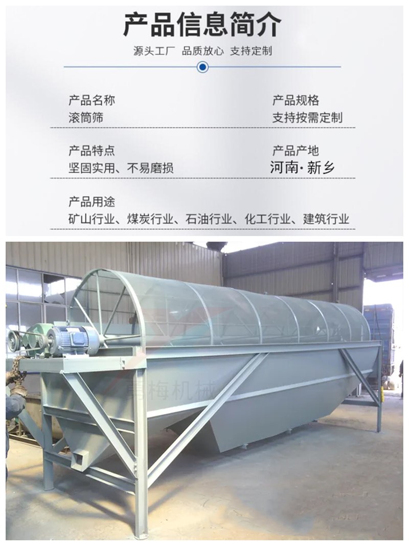 垃圾篩分設備圓轉筒篩 有軸滾筒篩分機物料在滾筒內不斷翻轉、滾動,使卡在篩孔中的物料可被彈出,17719958219 且部分滾筒篩設有清篩機構,能有效防止篩孔堵塞。滾筒段等部件采用分體設計,安裝與拆卸方便,維修量小,易損件少。設備運行可靠,且相比其他一些篩型,具有投資成本低的優勢。
