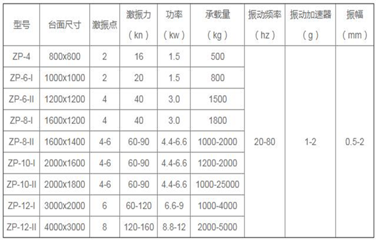 1、 振動平臺主要有支架、臺面、振動機構,減震機構四部分組振動平臺小圖.png 成。在振動機構的帶動下做橫向、縱向、上下等三維振動,故而得名。 2、 振動平臺的振動機構主要由若干臺振動電機、傳動板構成,振動電機的數量一般為偶數,如:4、6、8、10等,振動電機的型號決定了三維振動平臺的主要技術參數。 3、 振動平臺的減震機構主要由減震彈簧組成,共分為橡膠彈簧、復合彈簧、充氣彈簧等幾種。