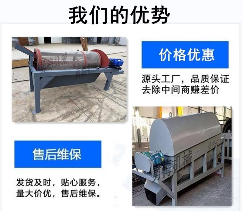 工作原理:電機通過減速機驅動滾筒裝置繞其軸線轉動,物料從進料口進入滾筒內。在旋轉產生的離心力、摩擦力及重力共同作用下,物料沿滾筒內壁做螺旋式滾動。小于篩網孔徑的物料透過篩網落下,成為篩下物;大于篩網孔徑的物料則繼續在滾筒內滾動,直至從滾筒出料口排出,成為篩上物,從而實現不同粒徑物料的篩分。