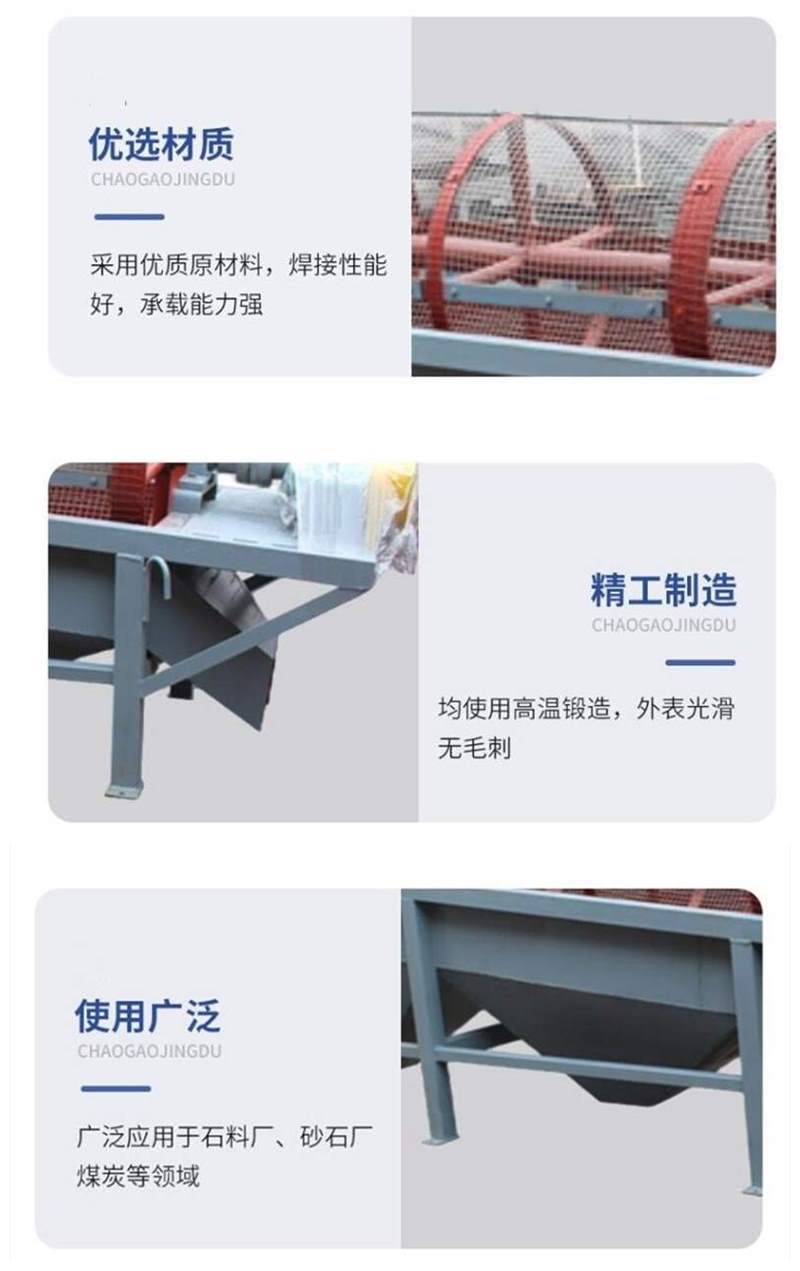 建筑石料振動篩 滾筒篩 八角篩主要由電機、減速機、滾筒裝置、機架、密封蓋、進出料口組成。17719958219 采用整體通軸結構,運轉平穩,同時密封隔離罩可降低噪音。特制篩網,篩分精度高,物料在滾筒內有充分的翻料和接觸篩孔的機會,篩分效率高。設備運行可靠,且相比其他一些篩型,具有投資成本低的優勢。
