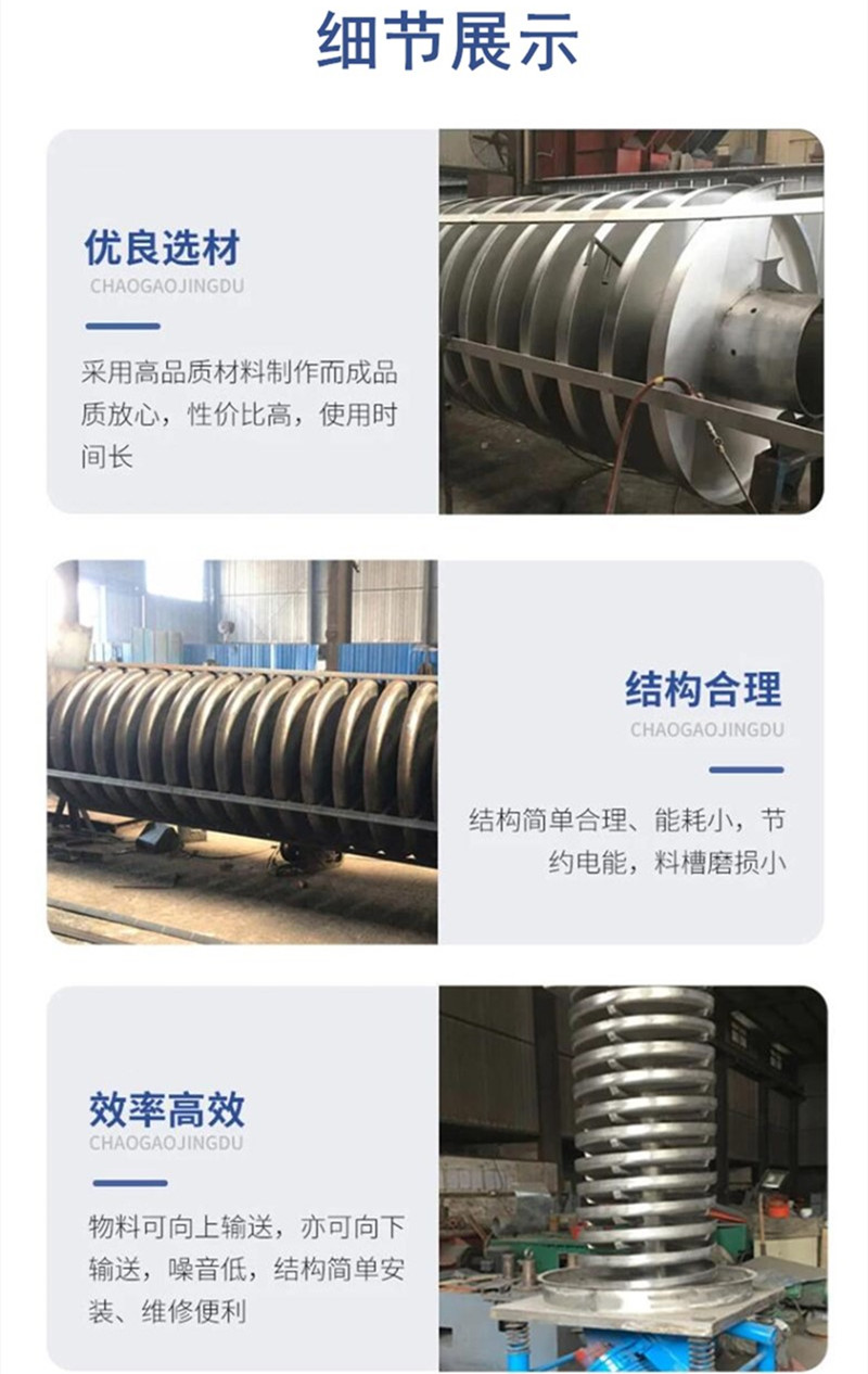 維護注意事項 記錄與追溯:建立維護臺賬,每次維護后記錄檢查結果、更換的配件、潤滑情況等,便于后續追溯故障原因,也能根據記錄調整維護周期(如某部件磨損過快,可縮短檢查間隔)。 操作規范:維護時必須切斷設備總電源,并懸掛 “正在維護,禁止開機” 標識,防止誤啟動;清理螺旋葉片時需使用專用工具,避免手直接接觸轉動部件。 物料適配:日常需確保輸送的物料粒度、濕度符合設備要求,避免長期輸送超硬、超黏的物料,從源頭減少部件磨損。