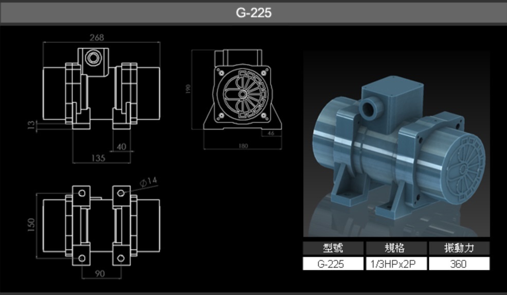 G-225 臥式振動電機 2 Pole-G系列 G-225振動馬達[詳細信息]