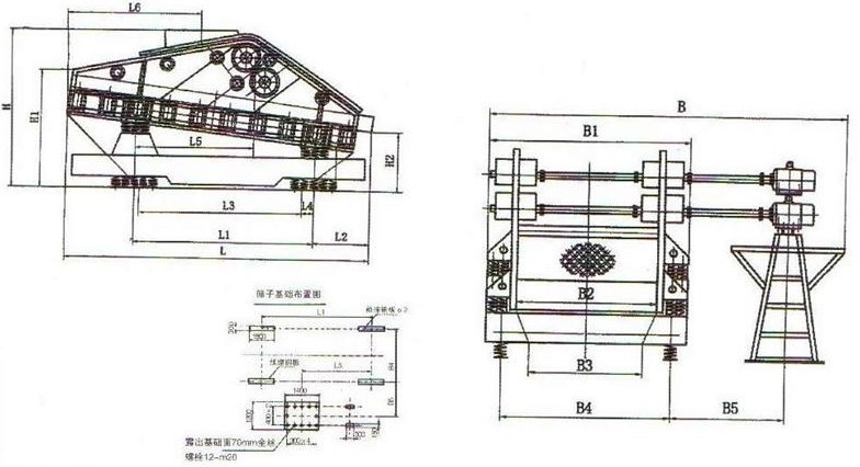 該系列振動篩由篩箱、振動器、支撐彈簧、隔振架、二次隔振彈簧、電動機(jī)及其支架等組成。篩框部件由篩框、篩面及緊固裝置組成。篩框側(cè)板用整塊優(yōu)質(zhì)鋼板制造、側(cè)板、加強(qiáng)筋板和橫梁、振動器底架間的連接采用高強(qiáng)度螺栓與自鎖式螺母或環(huán)槽鉚釘連接、牢固可靠。