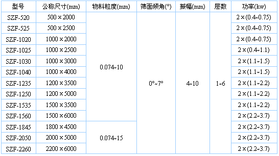 SZF直線振動(dòng)篩使用范圍