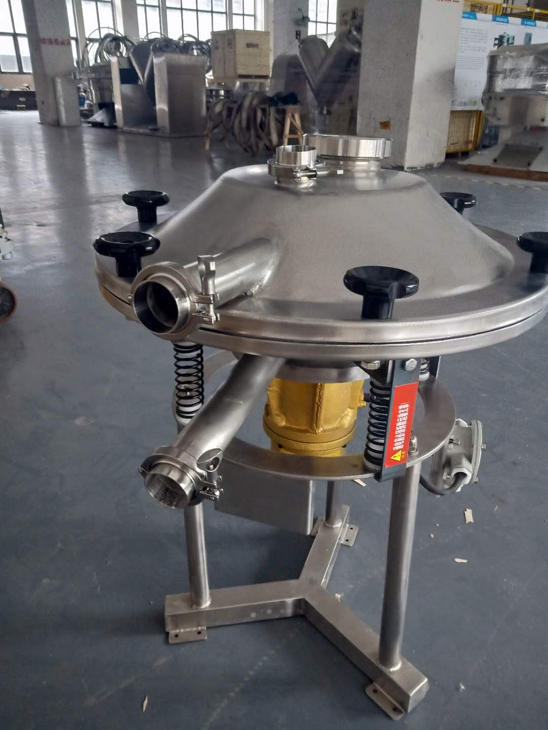高頻振動篩又稱高頻過濾篩,結構簡單、體積小、具有高頻率,低耗能的特點,頻率每分鐘可達3000次,比相同機型的篩分過濾設備節(jié)能一半,與物料接觸部分皆可采用不銹鋼304或者316L材質。 一: 高頻振動篩有兩種方式產(chǎn)生動能,一種是普通電機帶動激振器來工作。另外一種是振動電機高速旋轉產(chǎn)生振動來完成工作,這兩種不同的動力裝置都能有效的篩分各種物料。 二: 高頻振動篩比一般振動篩電機的轉速高出一倍,高頻振動篩具有效率高、低振幅、篩分頻率高。 三:高頻振動篩與普通篩分設備的原理不同,由于高頻振動篩采用了高頻率、高振次、高轉速的動能裝置,會有效的提高效率。普通振動篩篩分物料的范圍有限。比如說篩網(wǎng)目數(shù)超過300目就很難篩分了,但是高頻振動篩可以有效的篩分。這就是高頻篩與普通振動篩的區(qū)別。 |