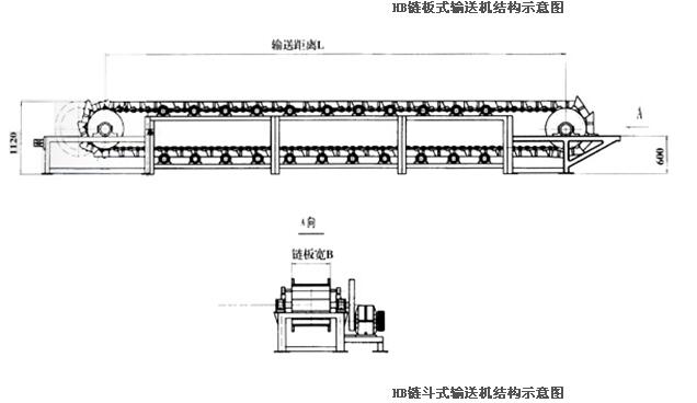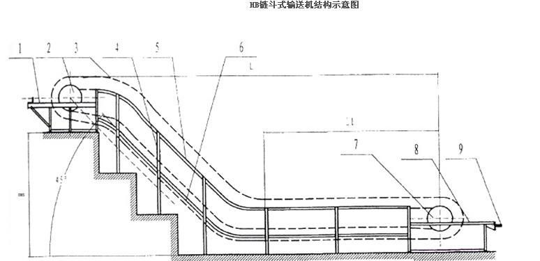 HB1200板式喂料機廠家一、鏈板輸送機/板喂機/板式喂料機概述: HB型鏈板、鏈斗式輸送機是一種固定輸送設(shè)備,該系列輸送機有如下特點: 1、適應(yīng)性強,本機適用于不帶粘性的散狀物料及粒狀、塊狀物料的輸送,尤其適用于塊狀較大,且具有鋒利棱角,灼熱的(如水泥熟料等)物料的輸送,而且在輸送過程中可同時完成冷卻、清洗等工藝過程; 2、整機裝置緊湊、安裝、調(diào)試、維修方便; 3、鏈板、鏈斗結(jié)構(gòu)合理、剛性好,耐沖擊性強; 4、以滾動磨擦代替滑動磨擦、運行阻力低; 5、鏈板機適用0°~15°傾角,鏈斗機輸送傾角較大可達45°; 6、輸送距離≤30m時,可采用環(huán)鏈及板鏈作牽引件,輸送距離>30m時,為防止滑動,需采用板鏈作牽引件。 二、HB型鏈板、鏈斗式輸送機主要技術(shù)參數(shù) 三、外形結(jié)構(gòu) :1、鏈板機板沿高一般為80~120mm,視輸送物料及輸送量在設(shè)計時可適當變動,其物料是連續(xù)在鏈板上存放,為防止其過多漏料,其上傾角度一般不大于15°,其外型結(jié)構(gòu)見下圖。2、鏈斗機的物料是存放在單鏈斗里進行輸送,其在輸送過程中,依靠重力及滾輪作用,鏈斗總處于水平狀態(tài),故其可用于較大傾角輸送物料過程,其較大上傾角可達到45°,共外型結(jié)構(gòu)見下圖。 HB鏈板式輸送機結(jié)構(gòu)示意圖 HB鏈斗式輸送機結(jié)構(gòu)示意圖 1、頭部 2、動力驅(qū)動鏈輪組 3、運載組件 4、傾斜中間支部 5、上道軌 6、下道軌 7、尾部鏈輪組 8、尾架 9、絲杠拉緊裝置 四、注意事項 1、鏈斗機、鏈板機主要用于輸送磨損強,溫度高的物料,用戶訂貨時需注明型號,兩輪中心距,傾斜角度,較大輸送量等工藝參數(shù)。2、動力裝置在鏈斗(板)機頭部、左、右裝可根據(jù)用戶要求變動。3、輸送速度以8~10m/min為宜,太低影響輸送量,太高噪音大,磨損增大。且HB800、HB1000適宜輸送堆密度較小的物料。 五、鏈板輸送機各部分結(jié)構(gòu)示意圖: