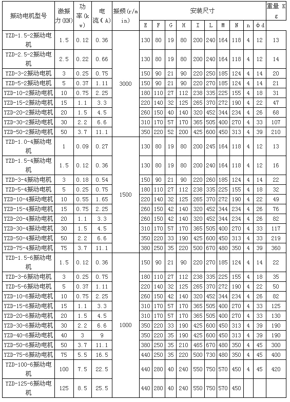 YZD振動(dòng)電機(jī)技術(shù)參數(shù)