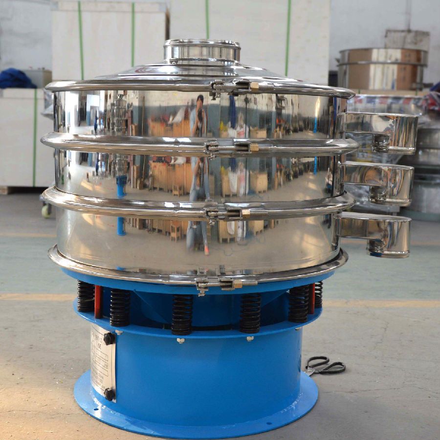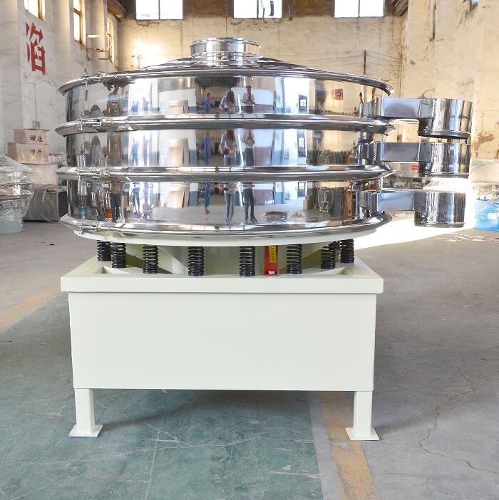 振動(dòng)篩是由直立式電機(jī)作激振源,電機(jī)上、下兩端安裝有偏心重錘,將電機(jī)的旋轉(zhuǎn)運(yùn)動(dòng)轉(zhuǎn)變?yōu)樗?、垂直、傾斜的三次元運(yùn)動(dòng),再把這個(gè)運(yùn)動(dòng)傳遞給篩面。調(diào)節(jié)上、下兩端的相位角,可以改變物料在篩面上的運(yùn)動(dòng)軌跡,由于其振動(dòng)運(yùn)轉(zhuǎn)原理很多企業(yè)也稱之為“三次元振動(dòng)篩分過(guò)濾機(jī)”,根據(jù)外形結(jié)構(gòu)被部分客戶稱呼為圓形篩,從材質(zhì)上分標(biāo)準(zhǔn)型旋振篩和普通型旋振篩的,標(biāo)準(zhǔn)型的與物料接觸部分為304不銹鋼材質(zhì),底座為碳鋼材質(zhì),普通型的通體為普碳鋼材質(zhì)。