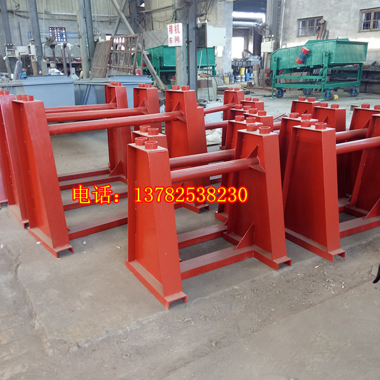 7、支架:由四個支柱和兩個槽鋼組成,支持著篩箱,安裝時支柱必須垂直與地面,兩支柱下面的槽鋼應(yīng)相互平行。