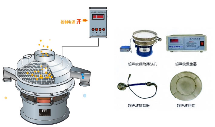 其工作原理是該設(shè)備將220V、50Hz或110V、60Hz電能轉(zhuǎn)化為18KHz的高頻電能,輸入超聲換能器,將其變成18KHz的機械振動,使振動篩達到高效篩分和清網(wǎng)的目的。超聲波振動篩是在傳統(tǒng)振動篩的篩網(wǎng)上安裝了一個低振幅、高頻率的超聲振動波(機械波),超微細粉體接受巨大的超聲加速度,改善低密度粉在重力沉降中的平降(粉末與網(wǎng)口輕接觸)、滑移效應(yīng),改善高密度金屬在網(wǎng)口的滯留或楔入,改善帶靜電粉體的粘附效應(yīng),從而提高篩分效率和篩分質(zhì)量,并使篩網(wǎng)表面上的物料始終保持懸浮狀態(tài),從而抑制粘附、摩擦、平降、楔入等堵網(wǎng)因素,較終解決了強吸附性、易團聚、高靜電、高精細、高密度、輕比重等篩分難題,以改善超微細分體的篩分性能,所以,超聲波振動篩特別適合高品質(zhì)、精細粉體的用戶使用。