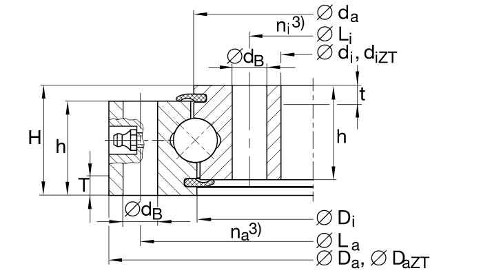 VSU20系列 四點(diǎn)接觸軸承 標(biāo)準(zhǔn)系列20,無(wú)嚙合齒輪,兩側(cè)唇式密封