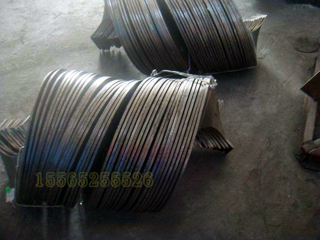 3、可成型超大、超厚,材質(zhì)為低碳鋼、低合金鋼、耐磨鋼及不銹鋼的等徑、等螺距、變徑、變螺距、及內(nèi)孔圓周和外徑圓周帶凸臺(tái)或豁口要求的多種形式的“分段等厚螺旋葉片”。