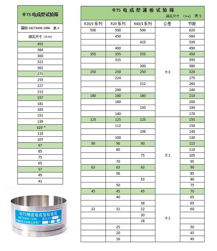 φ75電成型薄板試驗篩 是φ75精密電成型檢查篩的補充系列,采用國際標(biāo)準(zhǔn)ISO3310.3。(見表5)