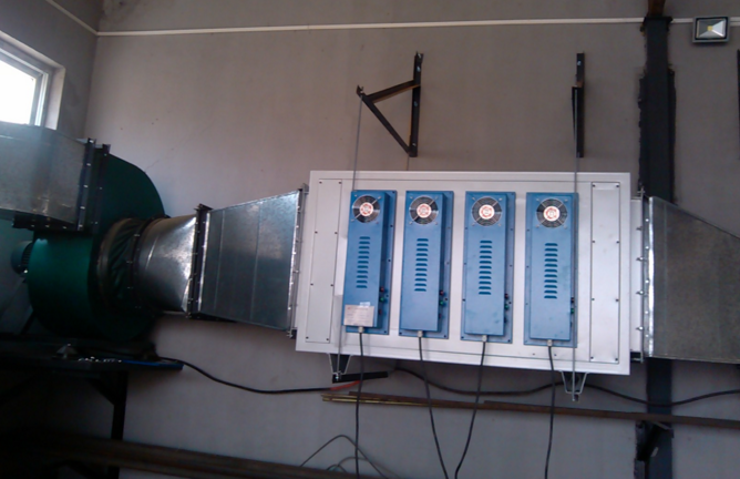 有機(jī)廢氣氣體處用排風(fēng)設(shè)備輸入到光催化除臭設(shè)備后,運(yùn)用高能UV紫外線光束及臭氧對(duì)惡臭氣體進(jìn)行協(xié)同分解氧化反應(yīng),使惡臭氣體物質(zhì)其降解化成低分子化合物、水和二氧化碳,再通過排風(fēng)管道排出室外。
