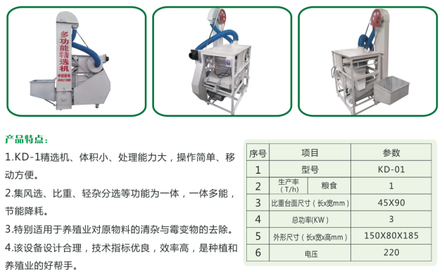 3.特別適用于養(yǎng)殖業(yè)對(duì)原物料的清雜與霉變物的去除。