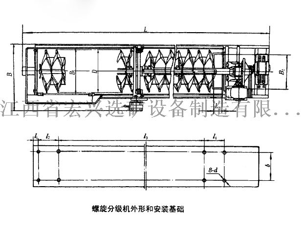 螺旋洗石機(jī)由槽體、減速機(jī)、電機(jī)、中心軸、螺旋葉片、支架組成。