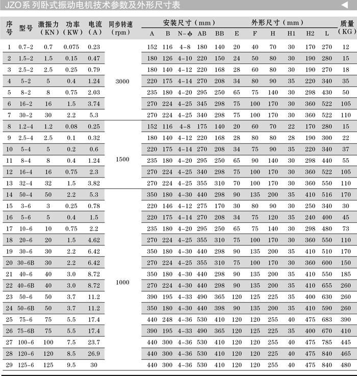 JZO振動電機主要技術(shù)特點: