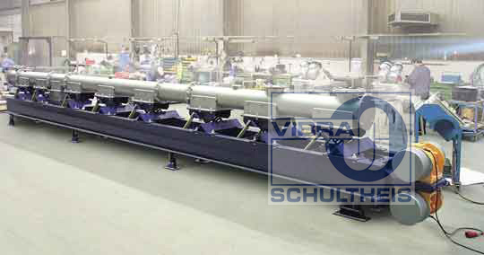 圖9:振動輸送機(jī)局部場景,總長110米,用于輸送硅酸,輸送能力為60 m³/h。在很多應(yīng)用案例中,管式共振輸送機(jī)(如圖10所示)比矩形橫截面的槽式輸送機(jī)更有優(yōu)勢。