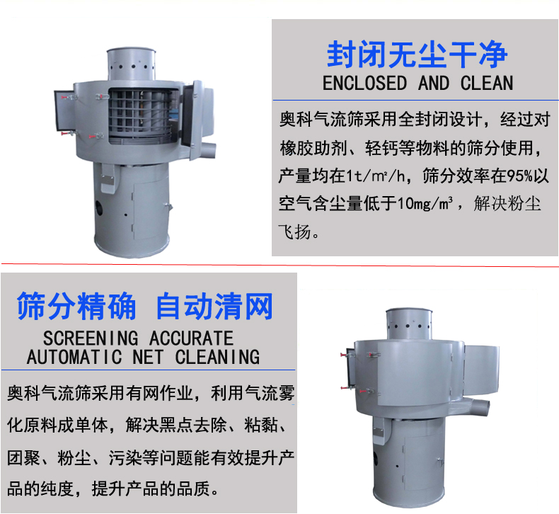 ▌新鄉(xiāng)奧科機(jī)械LQS橡膠助劑除雜推薦立式氣流篩產(chǎn)品特點(diǎn) / Product Features