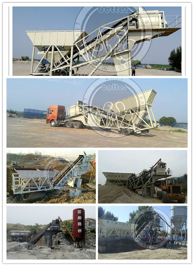 目前百特重工移動式混凝土攪拌站分為牽引式和拖掛式二種,拖掛式的底盤含有完整的前、后橋;牽引式的底盤則只有后橋,前端安放在牽引車鞍橋上。