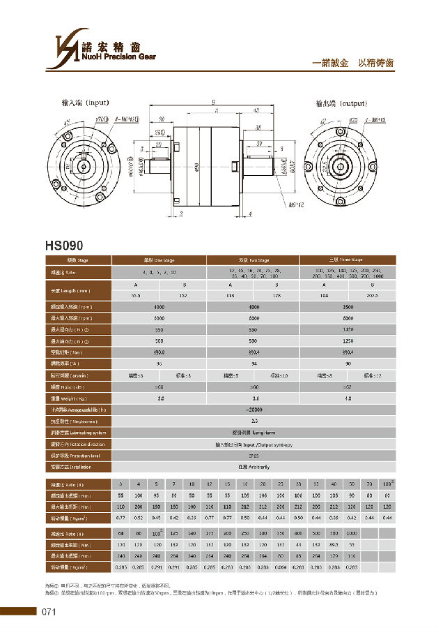 1:本產(chǎn)品為直齒,圓法蘭輸出,輸出軸采用雙軸承支撐,承載扭矩大;