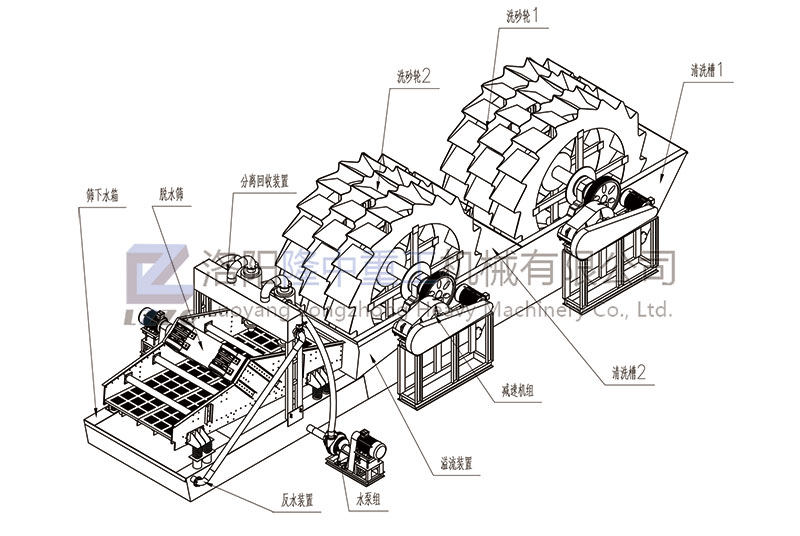 上圖是隆中雙輪洗砂回收一體機(jī)組成結(jié)構(gòu)