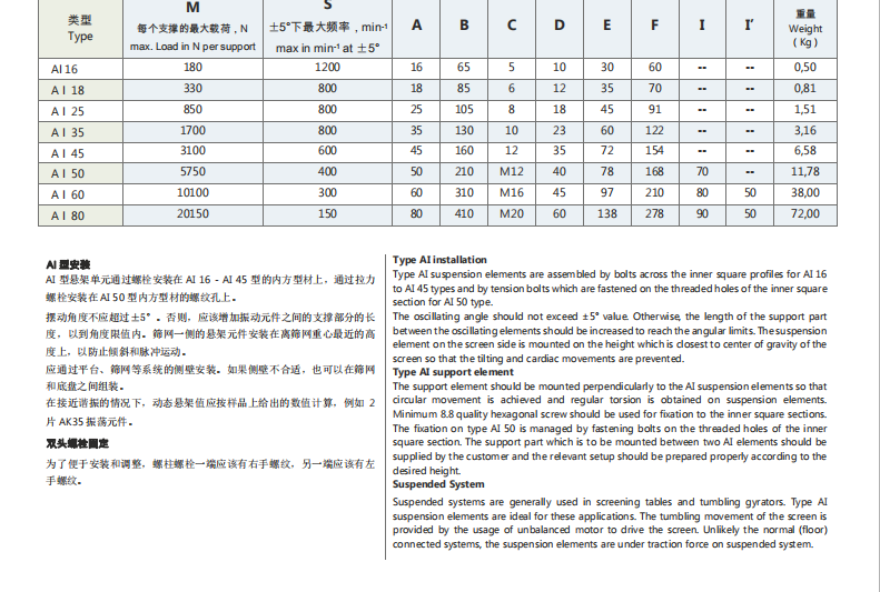 為了避免在使用的過程中產(chǎn)生的可能造成機器波動而不是平面運動的動力扭矩,上端AI彈性組件應(yīng)盡可能安置在與機器重心平面的同一個表面??傉駝咏嵌炔粦?yīng)超過10°,這個角度取決于上端和下端接頭的軸距。