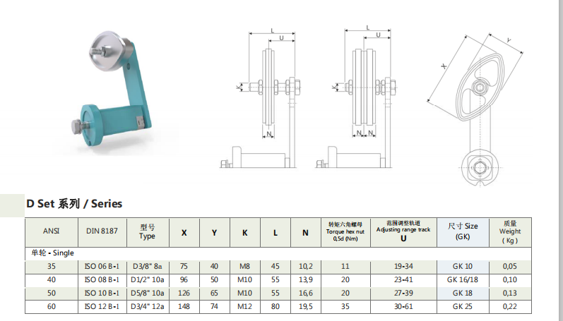 在ESTA懸架組件上裝上吊桿、滾子和鏈輪,可用作為自動張緊裝置、加壓滾子、緩沖器使用