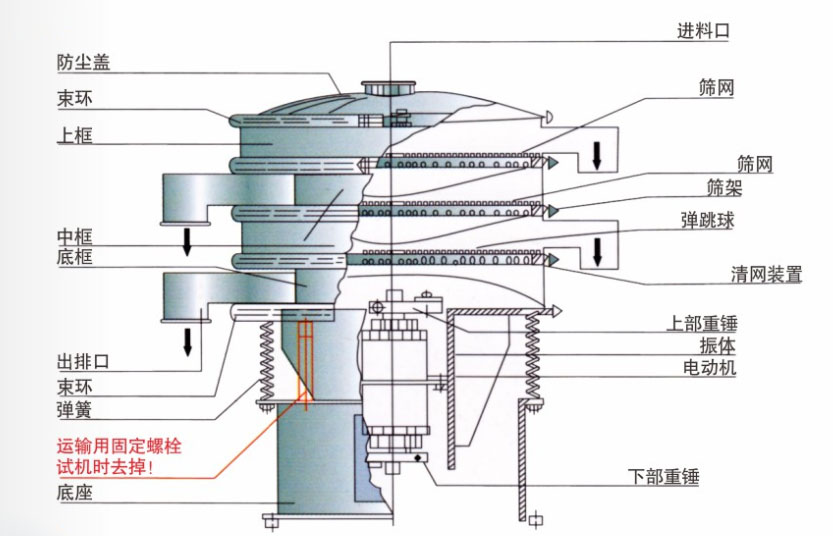 5、篩體各部分均采用扎制鋼板及型材焊接而成(部分組體間為螺栓連接)整體剛度好,牢固可靠。