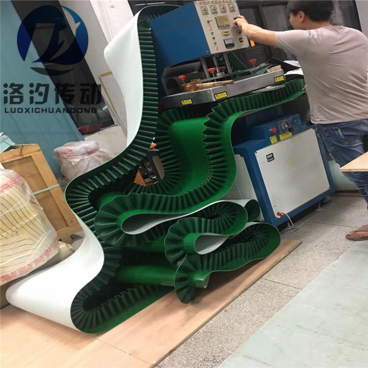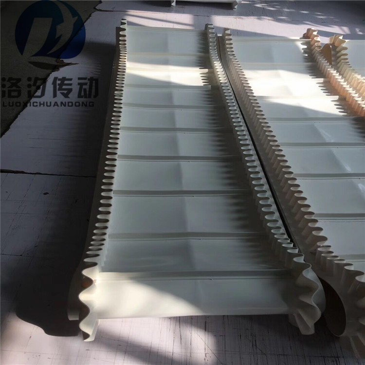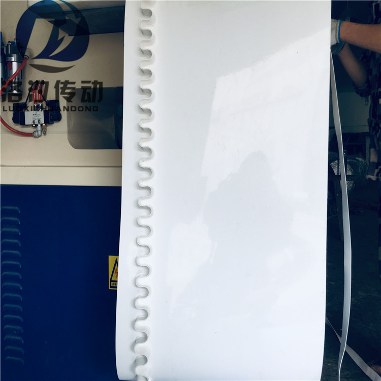 pvc白色裙邊帶是一種干凈衛(wèi)生 無味pvc材質(zhì)帶裙邊及擋板的食品包裝 上料 輸送皮帶通常被稱作裙邊擋板輸送帶 裙邊擋板輸送帶可分為食品級傳送帶、食品上料皮帶 皮帶式分揀機 水平輸送帶 花紋輸送帶、爬坡輸送帶、提升輸送帶、裙邊輸送帶、裙邊提升輸送帶、耐高溫輸送帶、耐酸堿輸送帶、砂光機皮帶、防靜電輸送帶、生產(chǎn)厚度1-10MM, 寬度3000MM,采用高強度、伸長率小、耐屈撓性能良好的骨架材料為強力層,傳動能力強,抗拉強度,PVC輸送帶