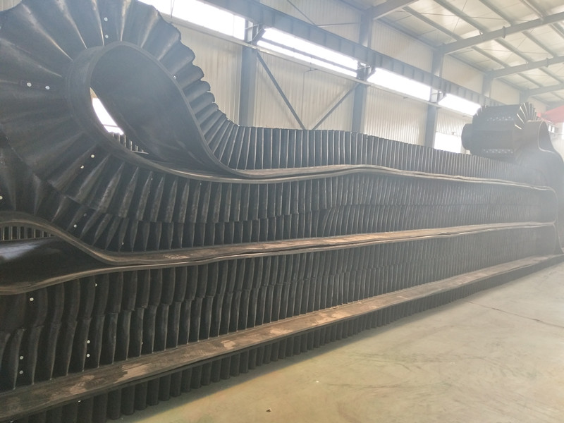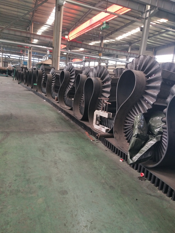 大傾角擋邊輸送到又叫裙邊隔板輸送帶, 是由基帶、擋邊、橫隔板3部分組成。擋邊起防止物料測滑撒落的作用