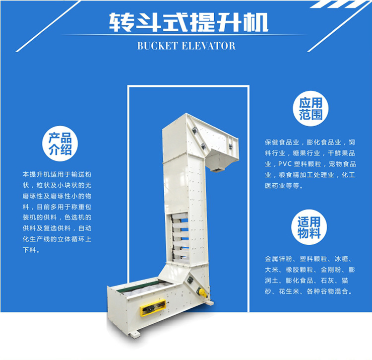 按牽引構(gòu)件型式分為:帶式斗式提升機(jī)、板鏈?zhǔn)蕉肥教嵘龣C(jī) 我們公司只運輸沙石就是用的板鏈?zhǔn)降漠?dāng)時是在鶴壁市通用機(jī)械電氣訂購的買了幾年了用著還不錯;按工件特性分為:重型斗式提升機(jī)、中型斗式提升機(jī)、輕型斗式提升機(jī) 。