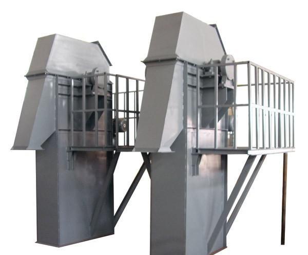該機(jī)采用流入式喂料,物料流入料斗內(nèi)靠板鏈提升到頂端,在物料重力作用下自行卸料。鏈條是優(yōu)質(zhì)合金鋼高強(qiáng)度板式鏈條,耐磨可靠,驅(qū)動部分采用硬齒面減速機(jī)。
