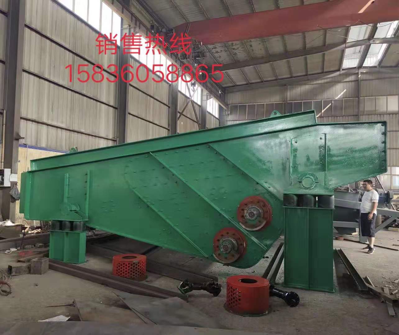 篩箱依靠兩臺振動電機(jī)做相反方向自同步旋轉(zhuǎn),使支承在減振器上的整個篩機(jī)做直線振動,物料從入料端落入篩箱后,迅速前進(jìn)、松散、透篩,完成篩分作業(yè)。
