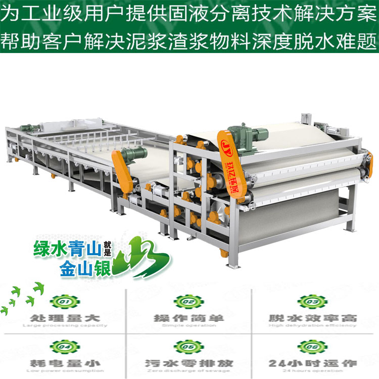 4.重力脫水區(qū)配置先進的布料器,是物料分布均勻,延長濾帶壽命。