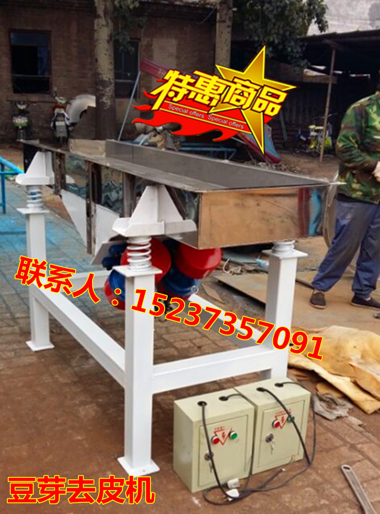 豆芽去皮機(jī)我們廠常用型號(hào)為525的,還有1020型的。也就是50公分寬,2.5米長的篩子,1020型的就是1米寬2米長的篩機(jī),處理量小型的為500斤每小時(shí),中型的為900kg每小時(shí),當(dāng)然您的產(chǎn)量很大,我們也可以給您定做更高產(chǎn)量的機(jī)器豆芽去皮的機(jī)器我們的豆芽去皮的機(jī)器已經(jīng)更新?lián)Q代了,首先在篩網(wǎng)上面我們采用下傾斜試,還有在篩網(wǎng)上的改動(dòng),第三代的豆芽去皮機(jī)采用木框,新一代的通過客戶的使用情況和放映情況我們采用了直接沖孔板試豆芽去皮的機(jī)器。