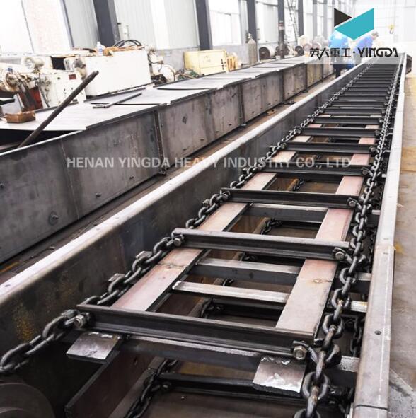 1.結(jié)構簡單:頭尾鏈輪通過環(huán)鏈鏈條,連接刮板進行物料運輸工作。