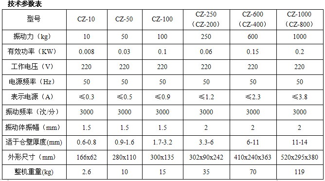 2、 CZ 型電磁倉(cāng)壁振動(dòng)器具有體積小、重量輕、結(jié)構(gòu)簡(jiǎn)單、耗電量 低和維修量小的特點(diǎn)。