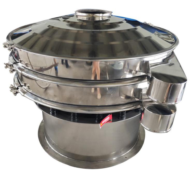旋振篩篩是一種高精度細(xì)粉篩分機(jī)械,其噪音低、效率高,快速換網(wǎng)需3-5分鐘,全封閉結(jié)構(gòu),適用于粒、粉、粘液等物料的篩分過(guò)濾。旋振篩是由直立式電機(jī)作激振源,電機(jī)上、下兩端安裝有偏心重錘,將電機(jī)的旋轉(zhuǎn)運(yùn)動(dòng)轉(zhuǎn)變?yōu)樗?、垂直、傾斜的三次元運(yùn)動(dòng),再把這個(gè)運(yùn)動(dòng)傳遞給篩面。調(diào)節(jié)上、下兩端的相位角,可以改變物料在篩面上的運(yùn)動(dòng)軌跡。