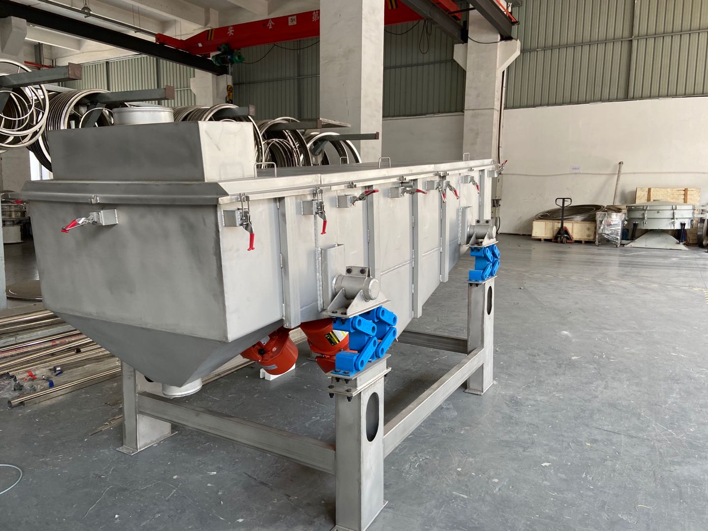 直線篩利用振動電機(jī)激振作為振動源,使物料在篩網(wǎng)上被拋起,同時(shí)向前作直線運(yùn)動,物料從給料機(jī)均勻地進(jìn)入篩分機(jī)的進(jìn)料口,通過多層篩網(wǎng)產(chǎn)生數(shù)種規(guī)格的篩上 物、篩下物、分別從各自的出口排出。具有耗能低、產(chǎn)量高、結(jié)構(gòu)簡單、易維修、全封閉結(jié)構(gòu),無粉塵溢散,自動排料,更適合于流水線作業(yè)。