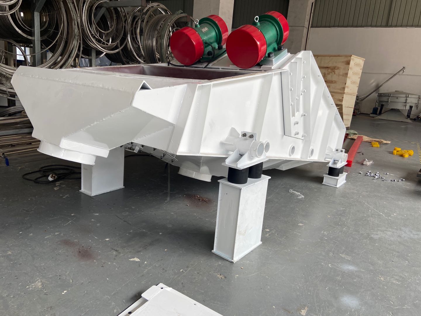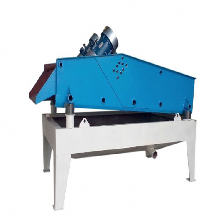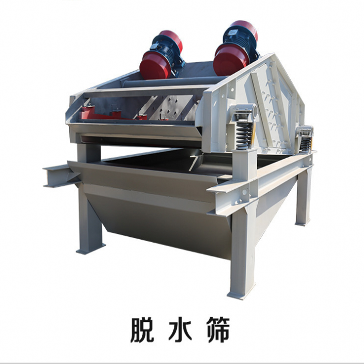 直線脫水篩采用了雙電機自同步技術,通用型偏心塊、可調振幅振動器。主要由篩箱、激振器、支承系統(tǒng)及電機組成。兩個互不聯(lián)系的振動器作同步反向運轉,兩組偏心質量產(chǎn)生的離心力沿振動方向的分力疊加,反向離心抵消,從而形成單一的沿振動方向的激振動,使篩箱做作往復直線運動。主要作用是脫水、脫泥、脫介,可用于砂石料廠水洗砂、選煤廠煤泥回收、選礦廠尾礦干排等,因此也叫振動脫水篩、礦用脫水篩、煤泥脫水篩、尾礦脫水篩、高頻脫水篩等。直線脫水篩作用于某些含泥量低的物料時也可單使用,不需要洗砂機,比如石英砂、鉀長石等。因為該類物料一般含泥量低,使用洗砂機水洗砂不但耗能而且效果不佳,很重要的是直線脫水篩比洗砂機投資成本低.