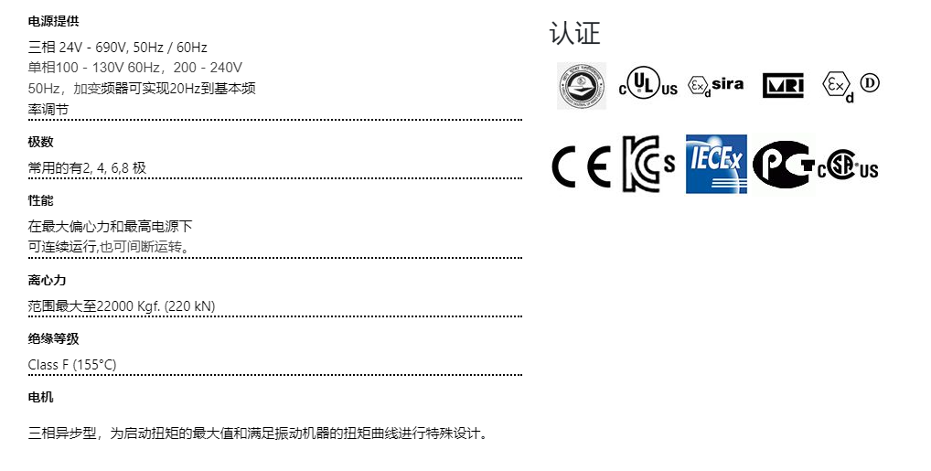 CDX系列增加了很多認證,這取決于振動電機的型號。
