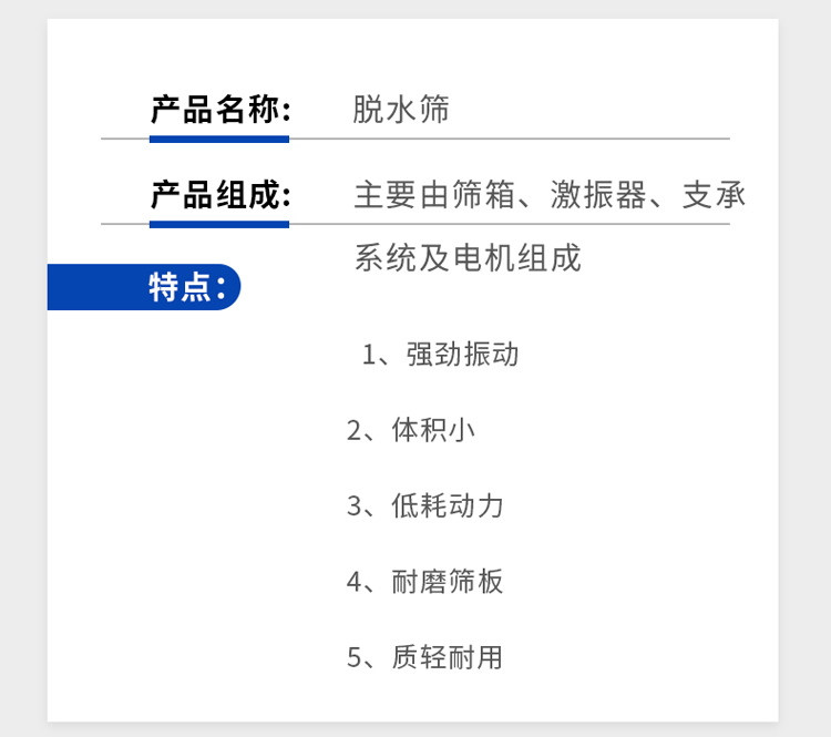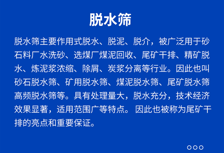 關鍵詞: 脫水篩 振動脫水篩 聚氨酯細沙回收脫水一體機泥漿尾礦分離設備