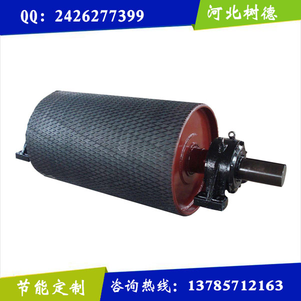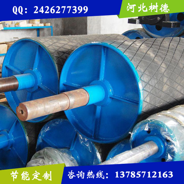 筒體多為光面或包膠。使用時候為了防止皮帶打滑和增加摩擦力,在滾筒表面進行橡膠包裹。樹德橡膠滾筒包膠厚度根據(jù)滾筒直徑一般采用以下標準:直徑小于500mm=厚度10mm;直徑500—800mm=厚度12mm;直徑大于80mm=厚度15mm。