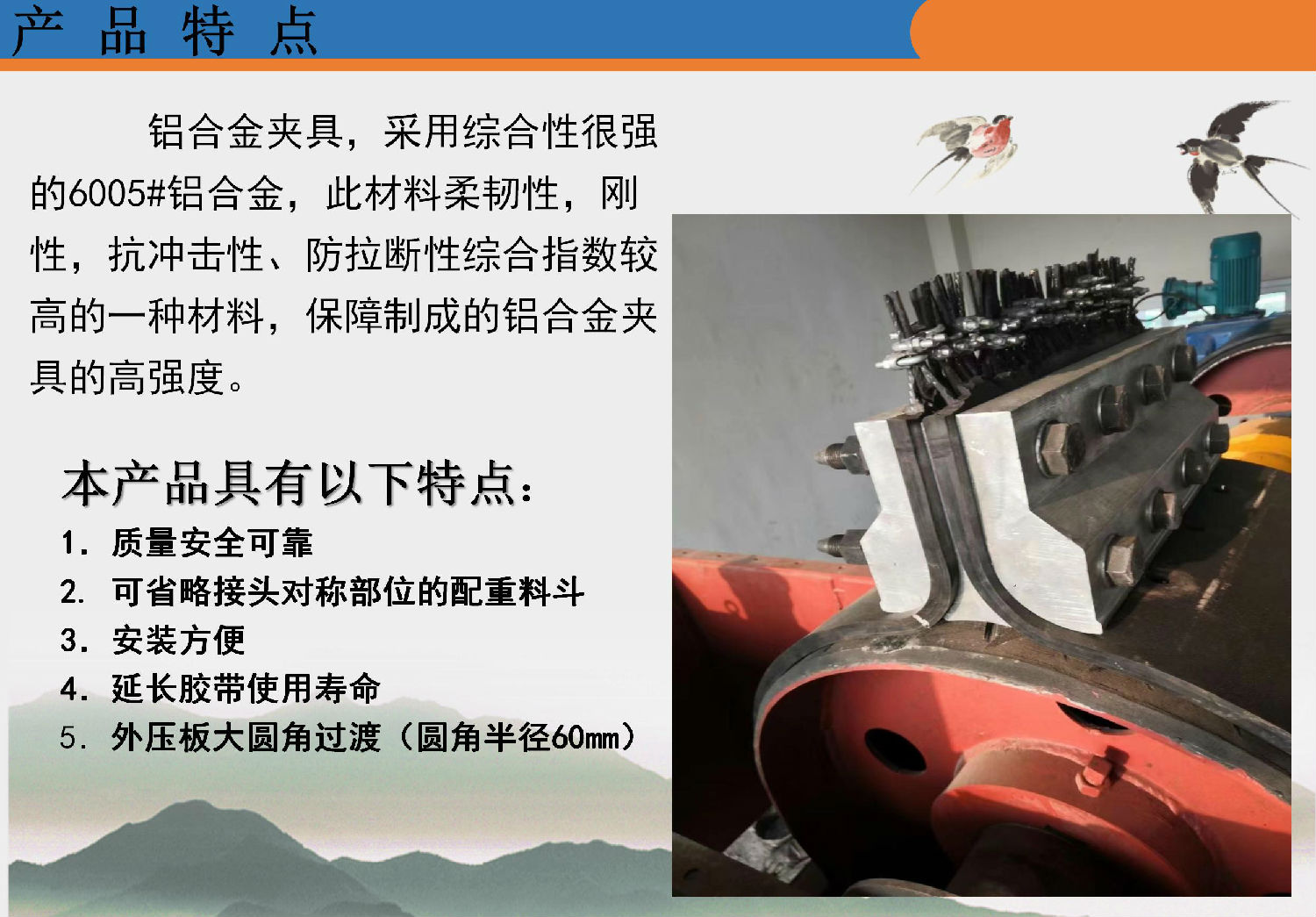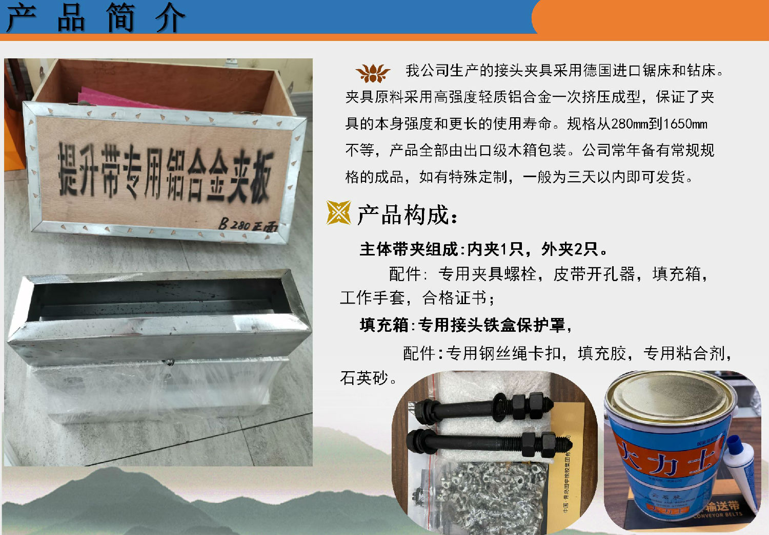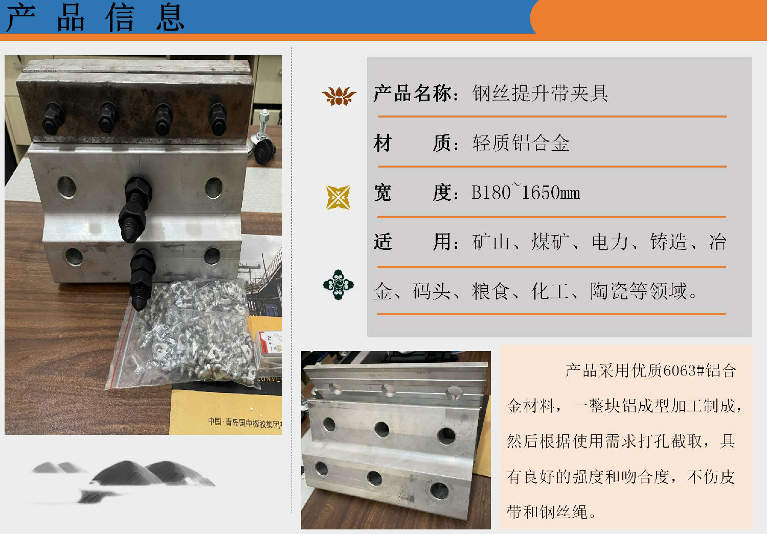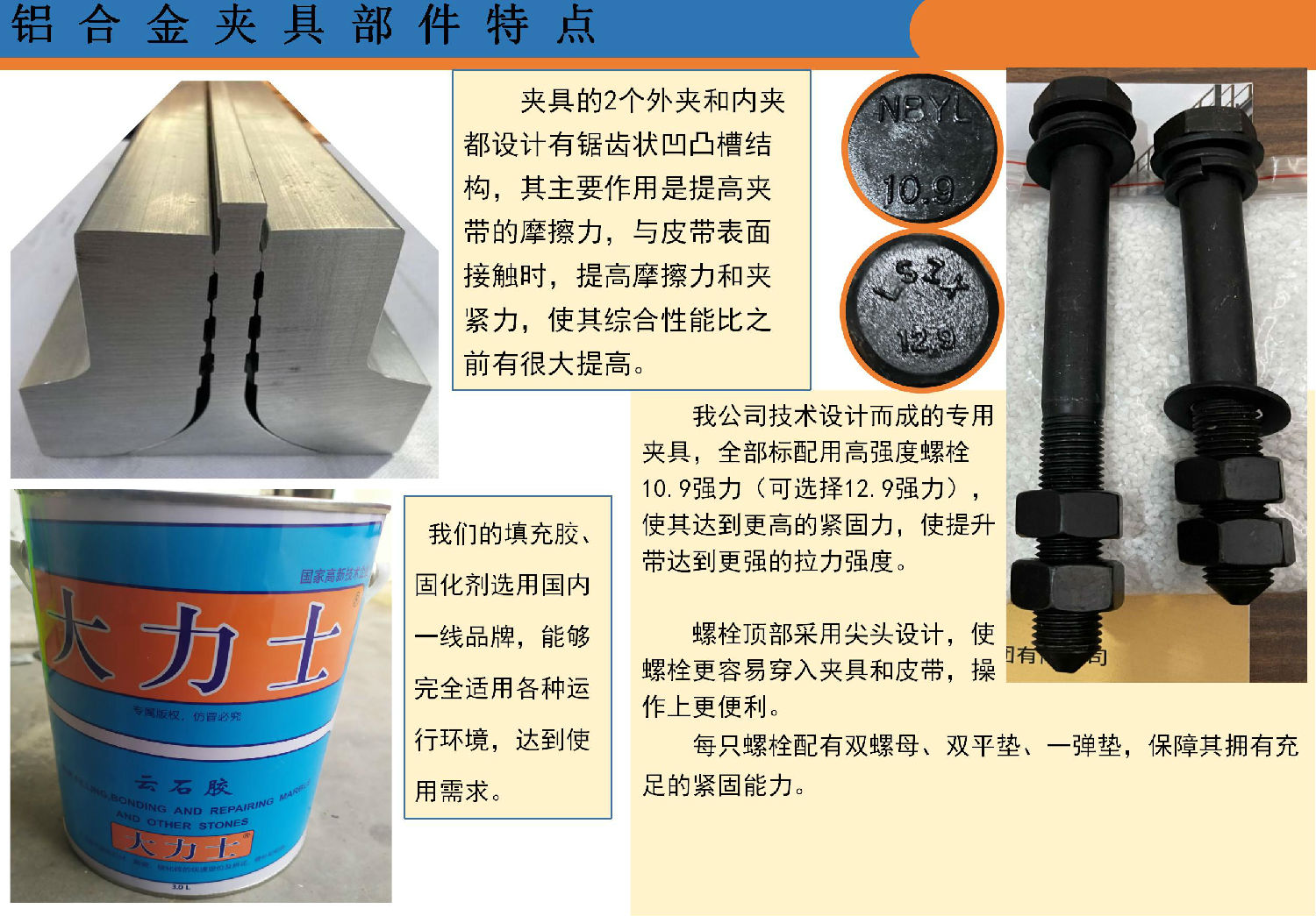 關鍵詞: 鋁合金夾具 鋼絲膠帶接頭 斗提帶夾板