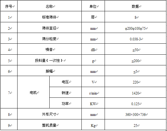 備注:本類型檢驗(yàn)篩采用的篩具為軍工企業(yè)生產(chǎn)標(biāo)準(zhǔn)篩具,符合國家標(biāo)準(zhǔn);一層篩具是一種目數(shù),用戶可以根據(jù)檢驗(yàn)物料目數(shù)自行選擇和更換,操作使用方便。采用的篩具符合國家標(biāo)準(zhǔn)要求,篩網(wǎng)、篩框?yàn)?04不銹鋼設(shè)計(jì),篩網(wǎng)符合國家標(biāo)準(zhǔn)目數(shù)檢驗(yàn)規(guī)定,篩框直徑有Φ200、Φ100、Φ75三種規(guī)格。采用數(shù)字控制技術(shù),用戶可以通過液晶面板實(shí)現(xiàn)對設(shè)備運(yùn)行時(shí)間、振動(dòng)頻率等方面控制和顯示,在操作性、維護(hù)性方面更加可靠穩(wěn)定。