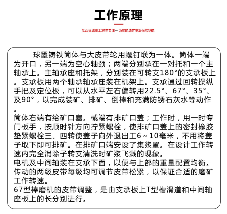主營產(chǎn)品:破碎機、球磨機、振動篩、滾筒篩、螺旋溜槽、跳汰機、水套離心機、鼓動溜槽、選礦搖床、混汞機、圓筒洗礦機、濕碾機、洗沙機、制砂機、單槽浮選機、瑪瑙三頭研磨機、錐形球磨機、真空過濾機、制樣粉碎機、小型破碎機,小型球磨機,標準振篩機、選礦實驗設(shè)備等