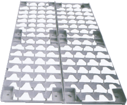 該篩板的開孔率最高可達80%,有一定水分的粘物,靠其高頻自振抖落,不易粘結(jié)在篩條上造成堵塞,是粘性或含有纖維物的難篩物料最為理想的篩板.
